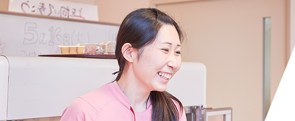 毎日利用者様とたくさんお話しができることがとても楽しいです。また、家族様やケアマネージャーの方とも距離が近いので、様々な目線で介護を行うことができます。利用者様が私たちと楽しく過ごし、気持ち良く施設をご利用いただいていることを嬉しく感じると共に、さらに良い施設にしていきたい!という想いも日に日に強くなっています。